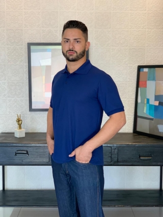 Produzida no tecido de Pique, composição 67% Poliéster e 33% Viscose.
