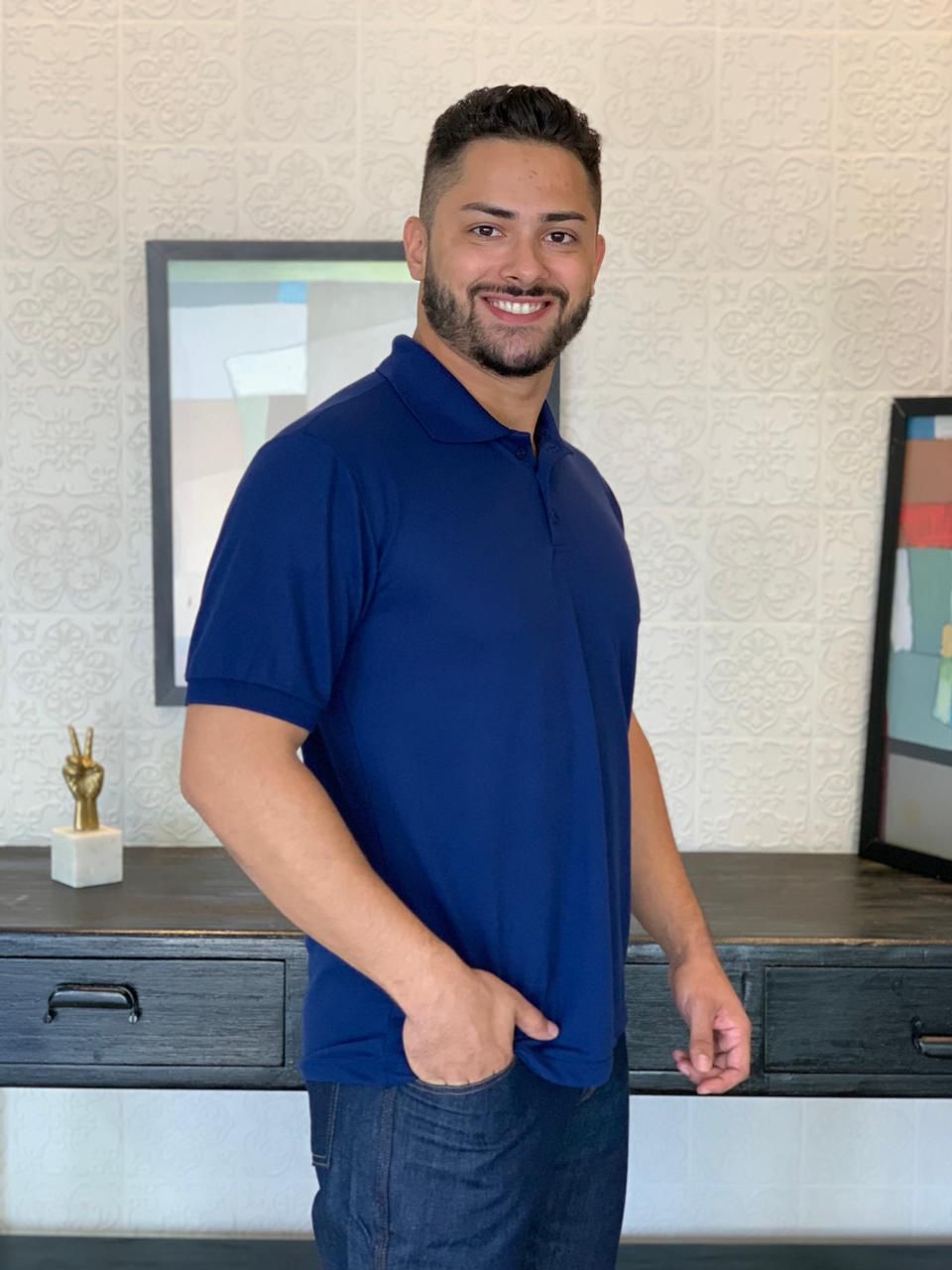 Camiseta Polo Pique - Manga curta, gola polo, carcela com três botões e bolso peito esquerdo.