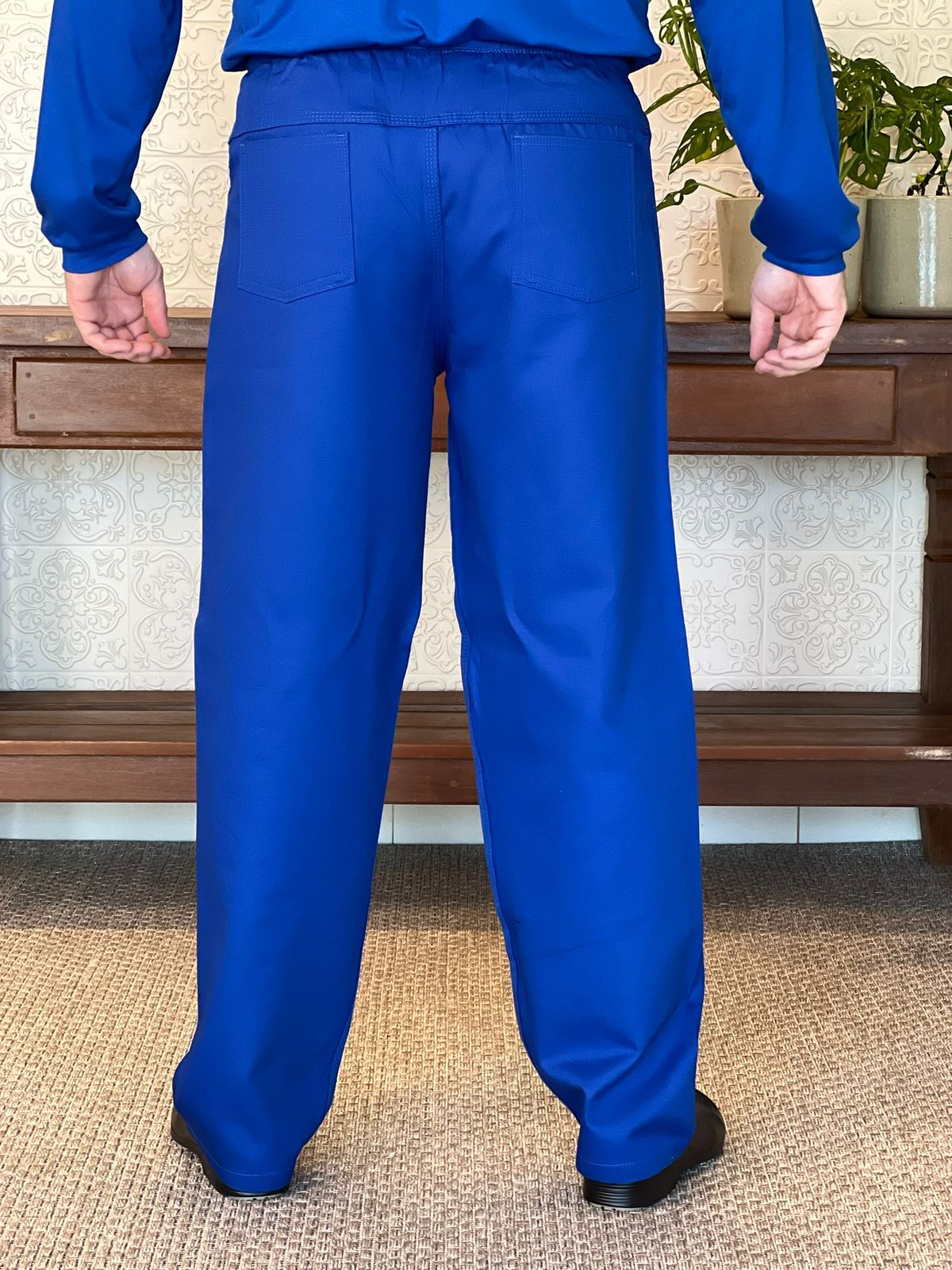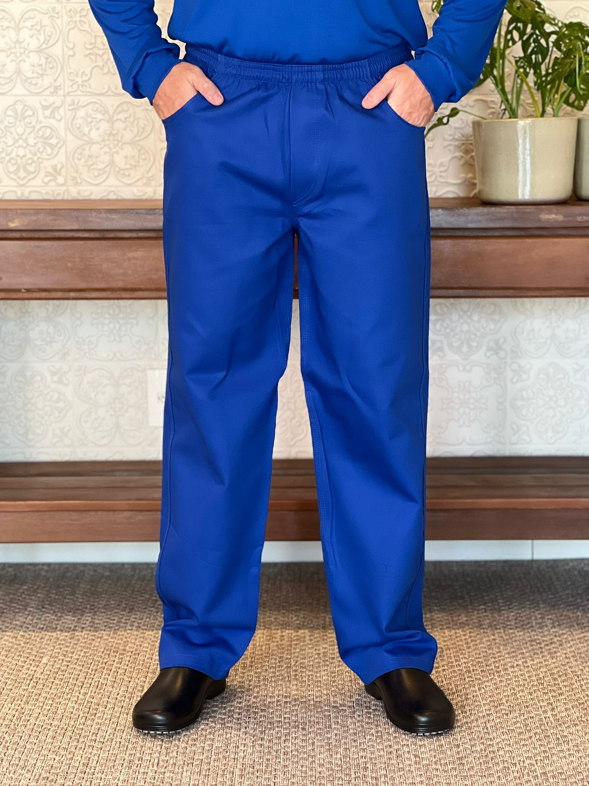 Para completar, o kit acompanha 2 calças em brim 100% algodão, modelo com elástico total na cintura, proporcionando ajuste confortável e liberdade de movimento.