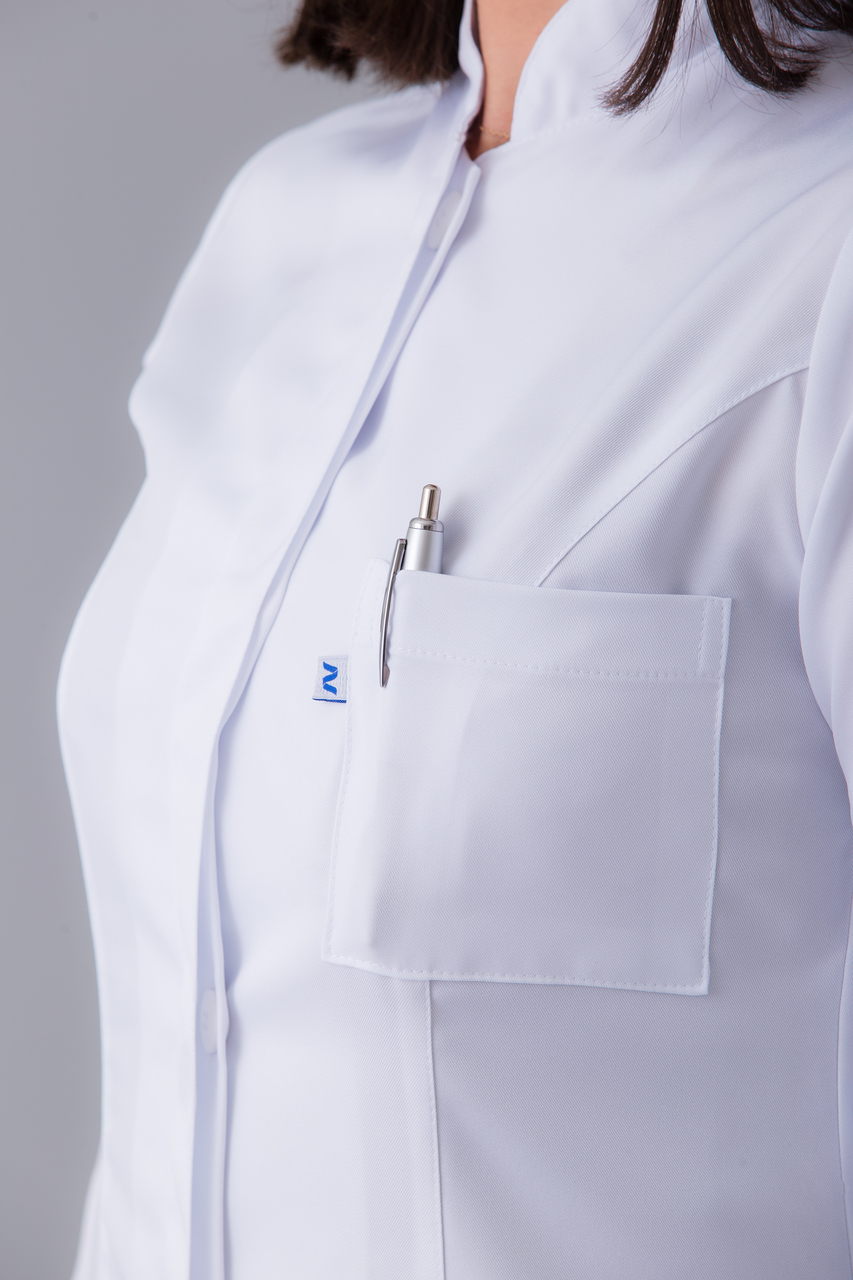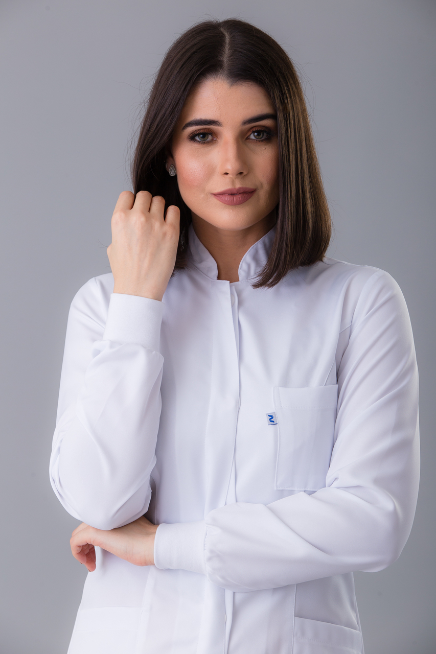 Jaleco Feminino Manga Longa Gola Padre Branco - Uniforme Profissional Feminino N478